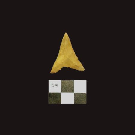 The stone tools below are projectile points. These tools are made by removing small stone flakes. The final shaped stone is then attached to a spear or arrow.
