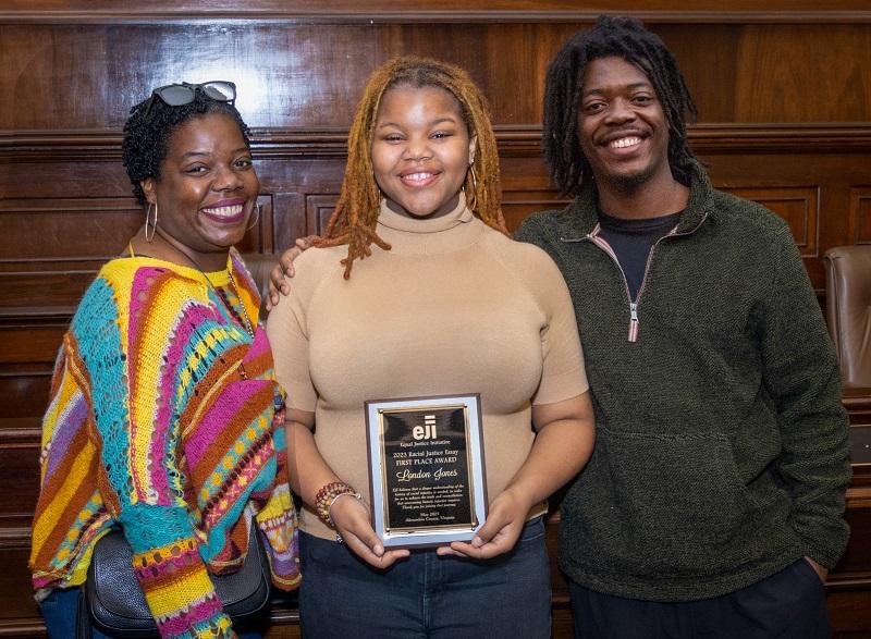 EJI organized and judged a Racial Justice Essay Contest that ACRP and Alexandria City Public Schools (ACPS) launched this past Martin Luther King Jr. Day. Students in grades 9-12 were eligible to enter by researching a racial justice topic and submitting an essay between 800 and 1,000 words by March 17, 2023. ACRP partnered with Alexandria City High School (ACHS), the Department of Recreation, Parks, and Cultural Activities, and the Alexandria Library to offer writing and editing support to students wishing to enter the contest. Ten ACHS students submitted final essays and EJI selected the three scholarship winners.