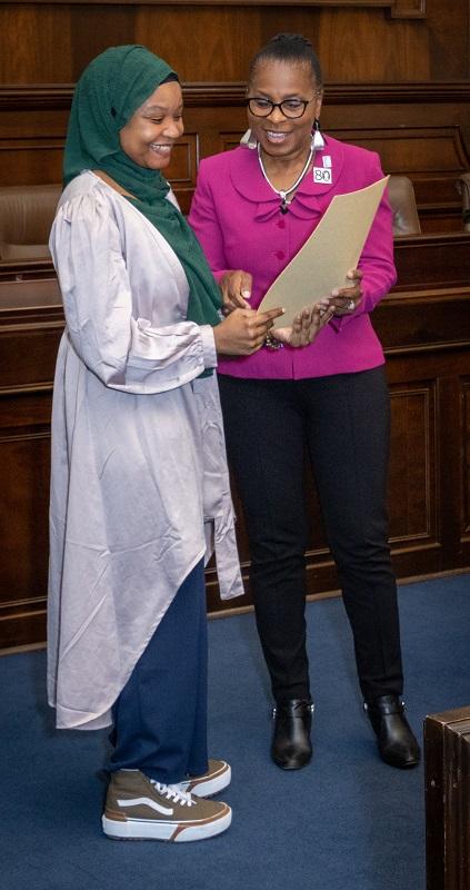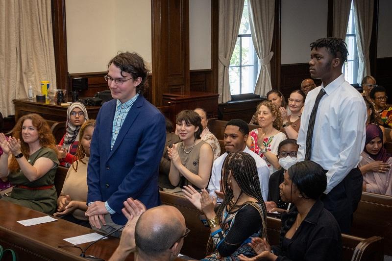 At the May 20, 2023 event at City Hall, EJI Rep. Deksyos Damtew presented a total of $5,000 in scholarships to three students for essays exploring racial disparities in health care, modern-day lynchings, and an inaccurate historical portrayal that makes it a crime to be Black.