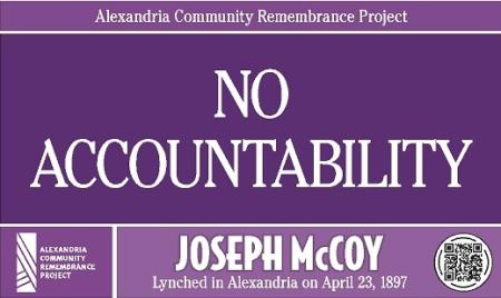 I hold the 1897 leadership of Alexandria responsible for failing to protect Joseph McCoy and for failing to prosecute the perpetrators.