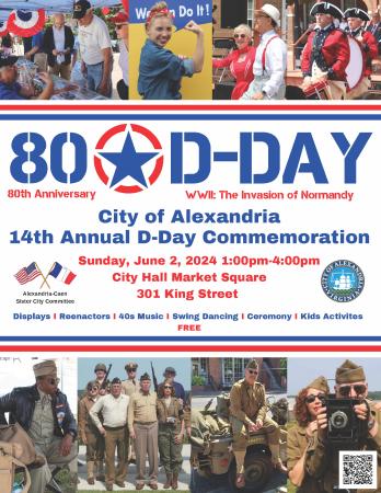 World War II Reenactors! 1940s Jazz Band! Swing Dancers! Children’s Activities! Fife and Drum Corps! FREE! All these and more will highlight Alexandria's Annual D-Day Commemoration.