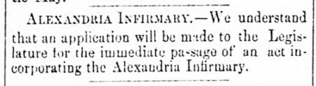 Healthcare in Alexandria took a big step forward when a group of Alexandria women led by Julia Johns met to organize the Infirmary in December 1872. Through their efforts, townspeople were no longer required to go to Richmond or Washington, D.C. to receive hospital care.