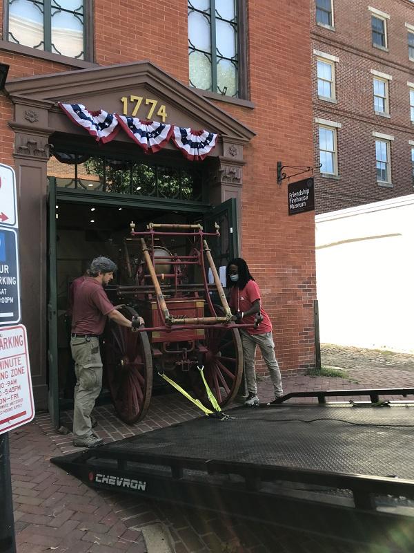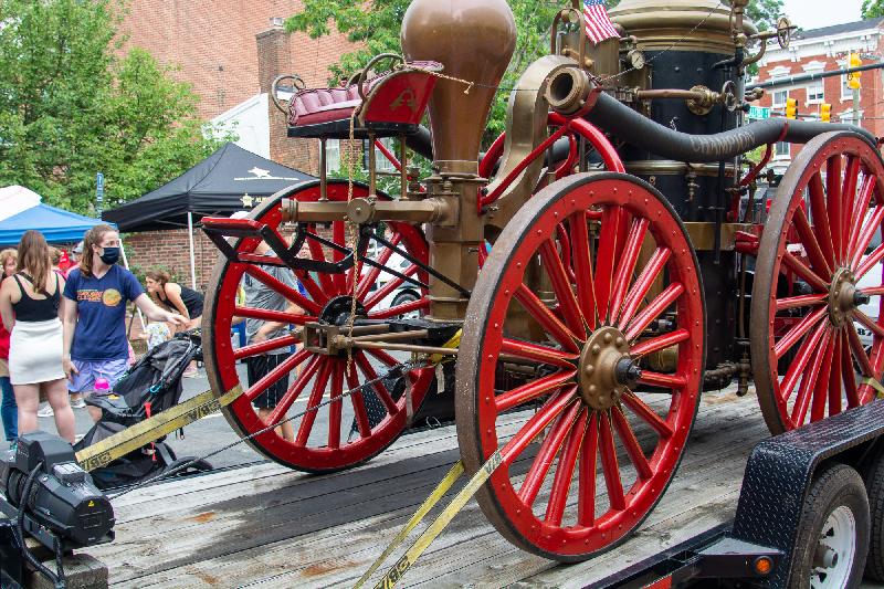 Friendship Firehouse Festival, loading pumper on truck, 2022
