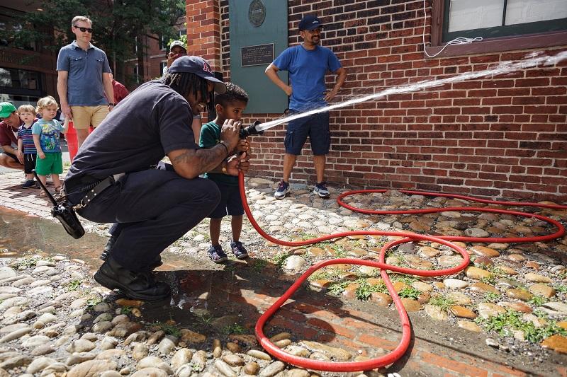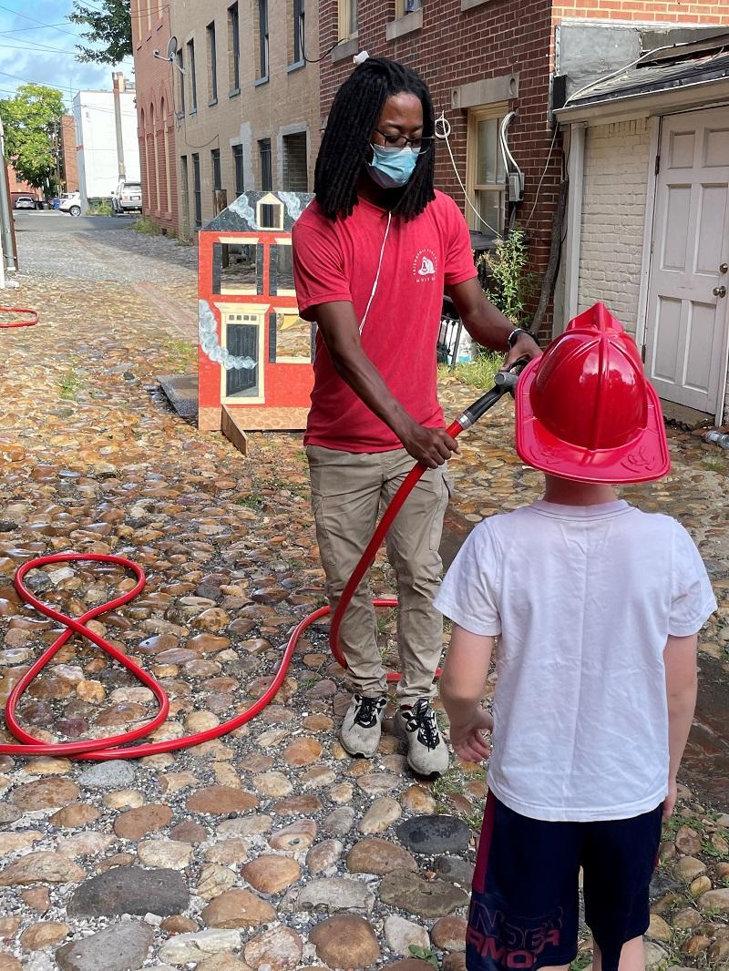 Friendship Firehouse Festival, hose activity with intern, 2022