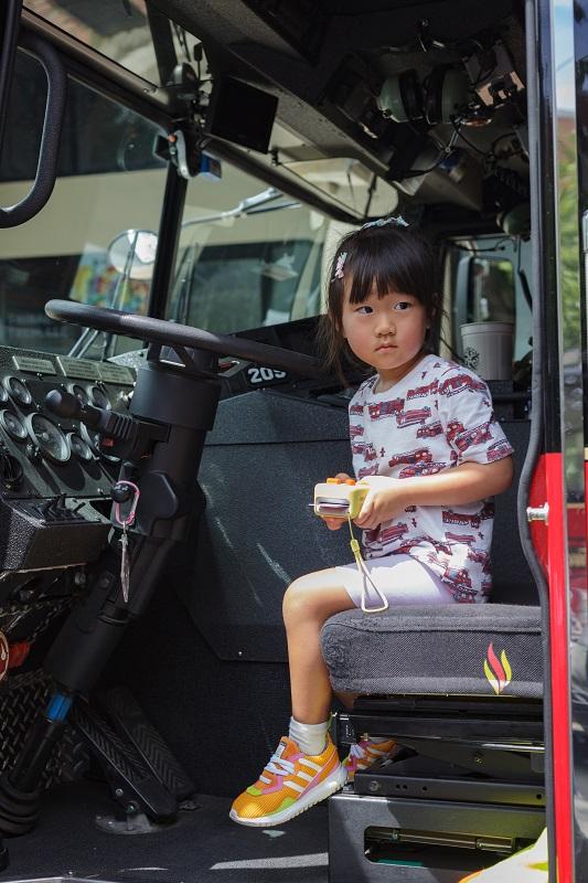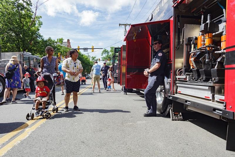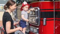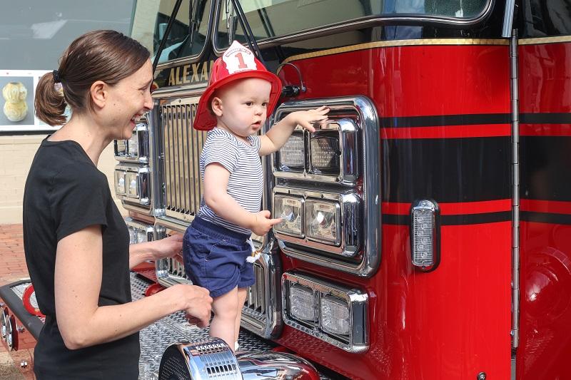 Friendship Firehouse Festival, truck with mother and child, 2022
