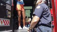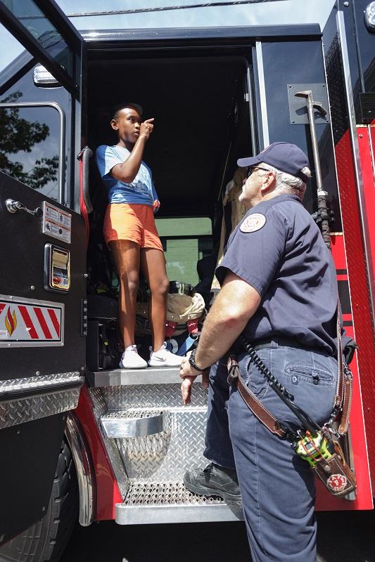 Visiting a fire truck. Photo by Tony DeScipio, NVCC