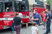 Friendship Firehouse Festival, truck with child and firefighter, 2022