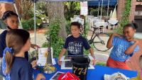 Kids and a parent enjoy a coloring activity at the 2019 festival.