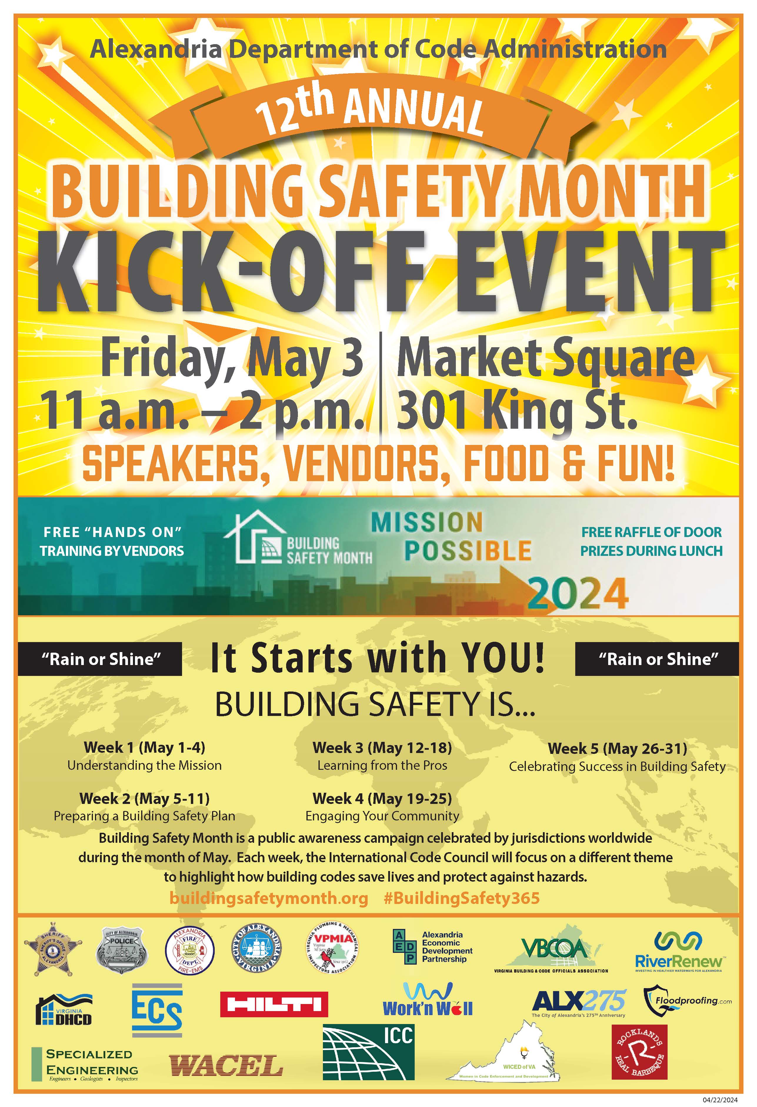 The City of Alexandria invites the public to its 12th annual Building Safety Month kickoff event on Friday, May 3 in Market Square (301 King St.).