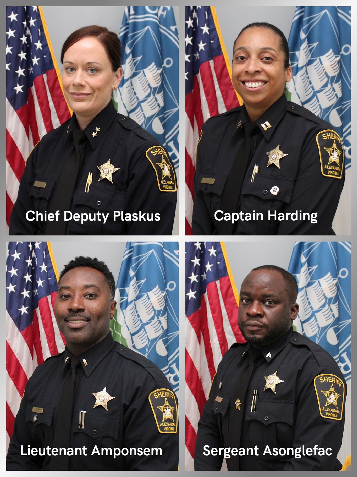 Sheriff Promotes Four Deputies Sheriff Sean Casey is proud to share several promotions over the past month. Chief Deputy Plaskus has served with ASO since 2008 and worked in the Detention Center, Special Operations, Inmate Services, Support Services, and Administrative Support, where she has most recently been the division commander. Captain Harding began her ASO career in 2008 and has worked in the Detention Center, Judicial Services, Administrative Support, and Support Services where she is currently coordinating implementation of the new jail management system. Serving with ASO since 2015, Lieutenant Amponsem has extensive experience at the Detention Center, handled watch commander responsibilities as needed, and recently assisted with a pilot program for new sergeant training. Since joining ASO in 2020, Sergeant Asonglefac has served at the Detention Center and in Judicial Services and is also chair of the Sheriff’s Employee Advisory Committee and vice president of the Sheriff’s Association. Best wishes to all! |