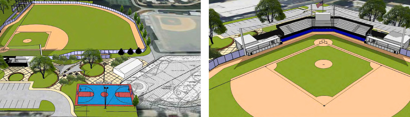 Between the completion of the plan in 2014 and the start of the design phase in 2021, the community identified specific needs, particularly regarding improvements to both Big and Little Simpson Ball Fields. The overall renovation project aims to implement the following enhancements: