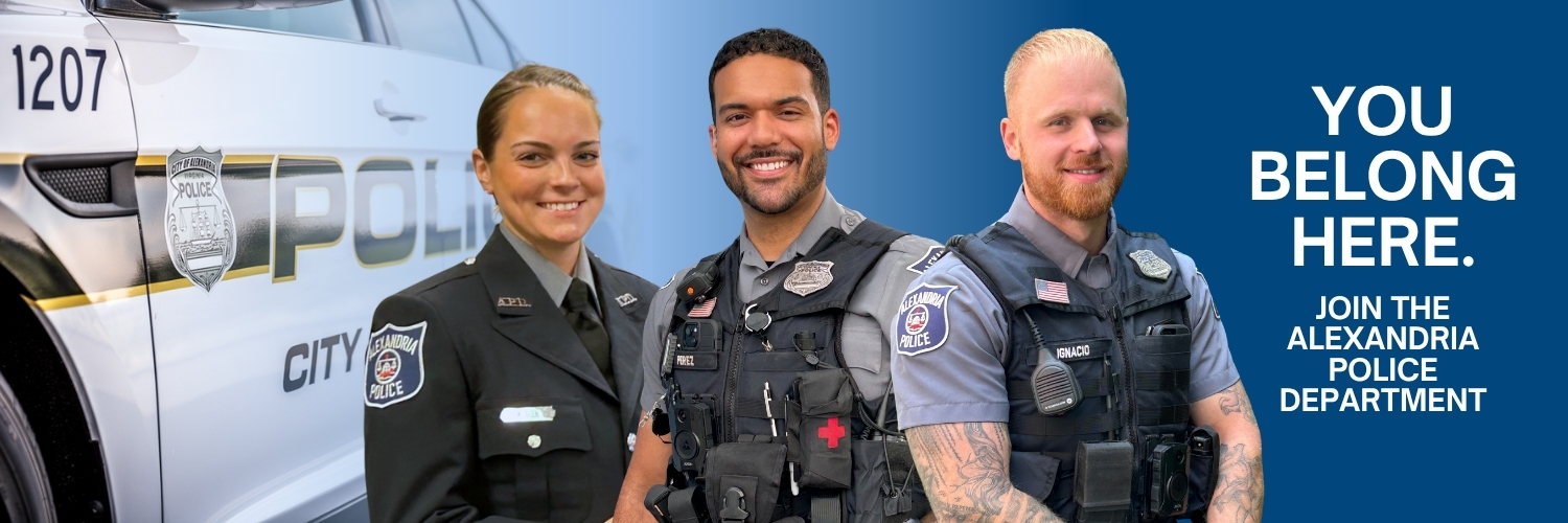 The mission of the Alexandria Police Department is to provide competent, courteous, and professional police services in partnership with our community. We are committed to safeguarding life and property, maintaining public order, and fostering a safe environment where all people feel respected and protected. Through transparency, accountability, and collaboration, we strive to build lasting trust while upholding the highest standards of integrity, service, and community engagement.