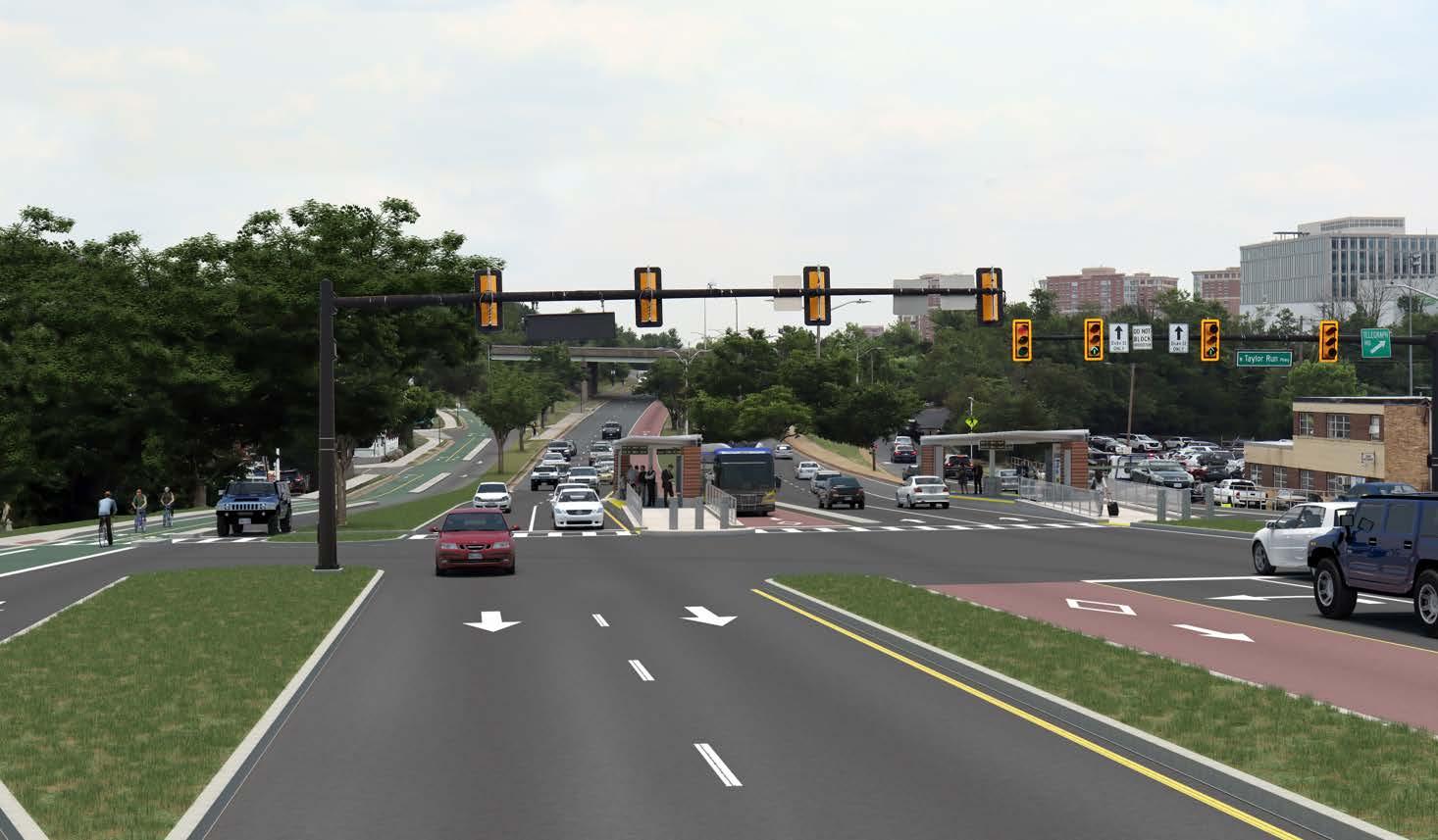 During the Alexandria West Planning Process, a concept for a new transit center at Southern Towers was developed with the community and key stakeholder. Currently, the City & DASH staff are working with property owners to evaluate project feasibility.