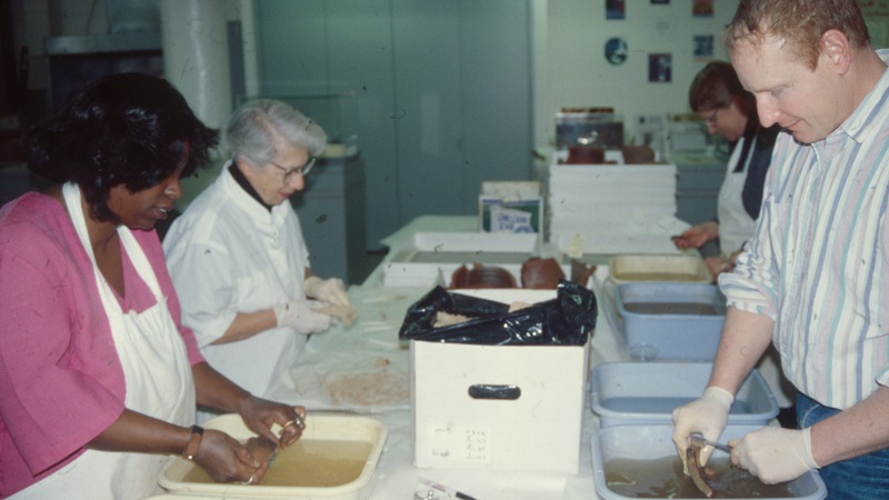 Volunteers wash artifacts from the Lee Street Site (44AX180).