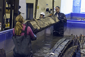 The wooden timbers from John Carlyle's 1755 public warehouse were conserved at the Maryland Archaeological Conservation Laboratory.