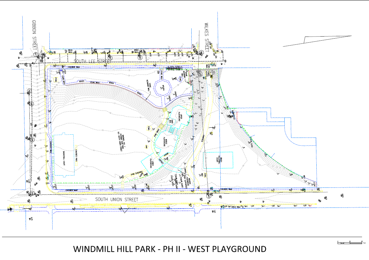Phase two of the Windmill Hill Park Project will focus on the west side of Windmill Hill Park adjacent to the Wilkes Street Tunnel and Wilkes Street right-of-way. Anticipated improvements include park accessibility, renovations to the existing playgrounds in compliance with current playground safety standards, improvements to the turf areas, the addition of an irrigation system, stabilization of the slope north of the playground, and creation of on-site bioretention facilities for improved stormwater management.