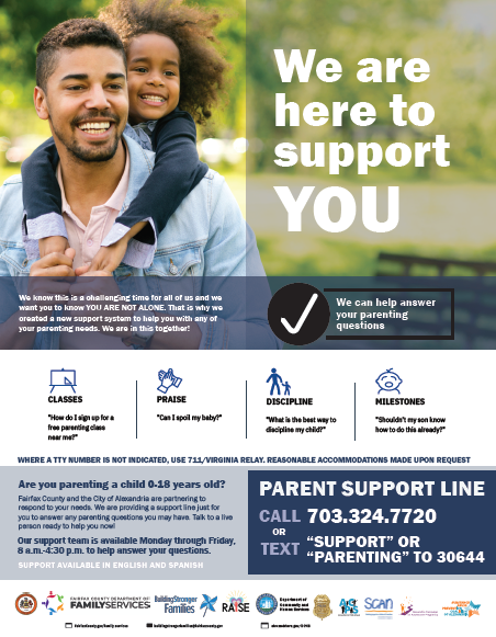 - Parenting Support Line (703.324.7720). Anyone, no matter their immigration status, can call and receive help.