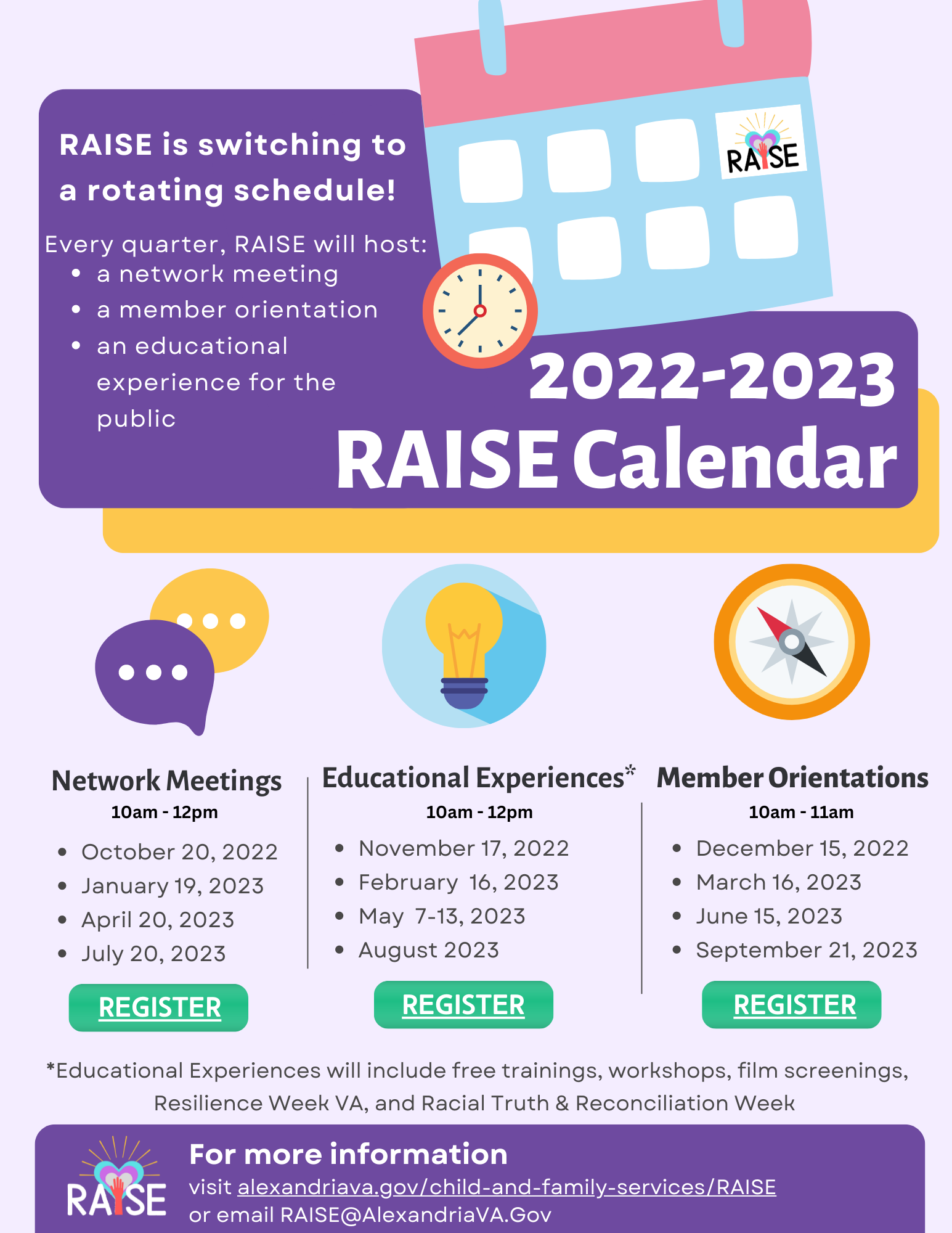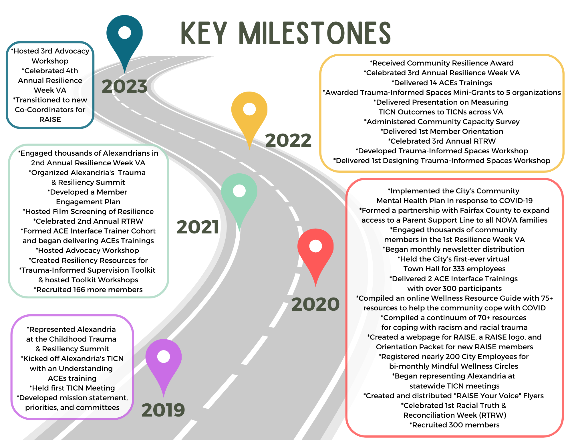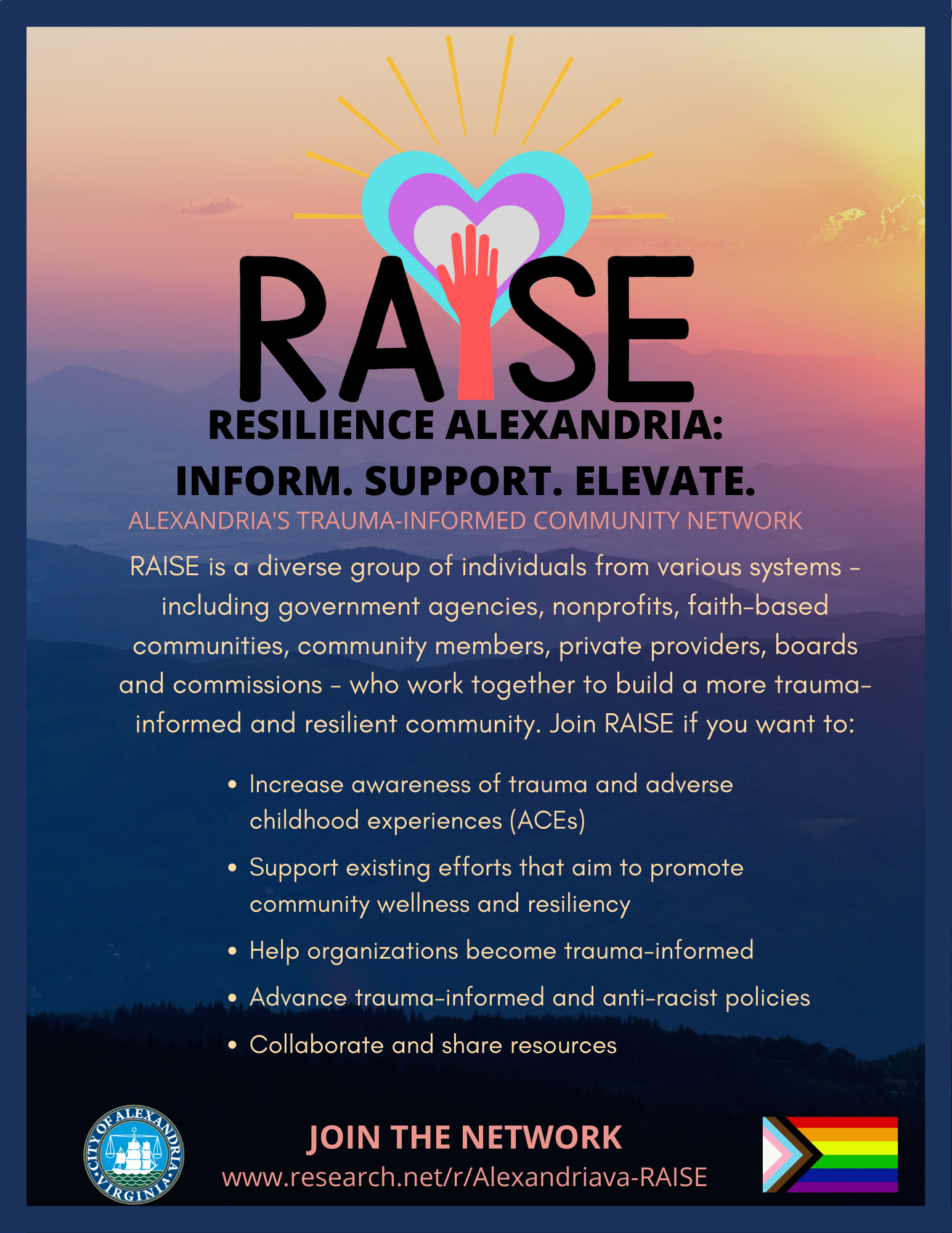 - Inform Alexandria’s community and various sectors about RAISE and its mission to build a more trauma-informed and resilient Alexandria;