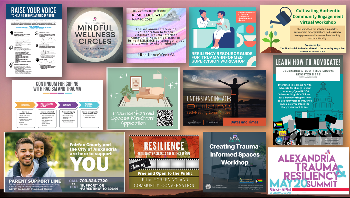 Alexandria’s Trauma Informed Community Network (TICN) is located in Alexandria, Virginia. Established in July 2019, Alexandria’s TICN aims to build a more equitable, safe, trauma-informed and resilient Alexandria by informing, supporting and elevating our community. Hence its name, Resilience Alexandria: Inform. Support. Elevate. (RAISE)