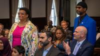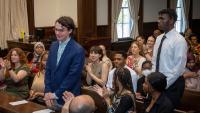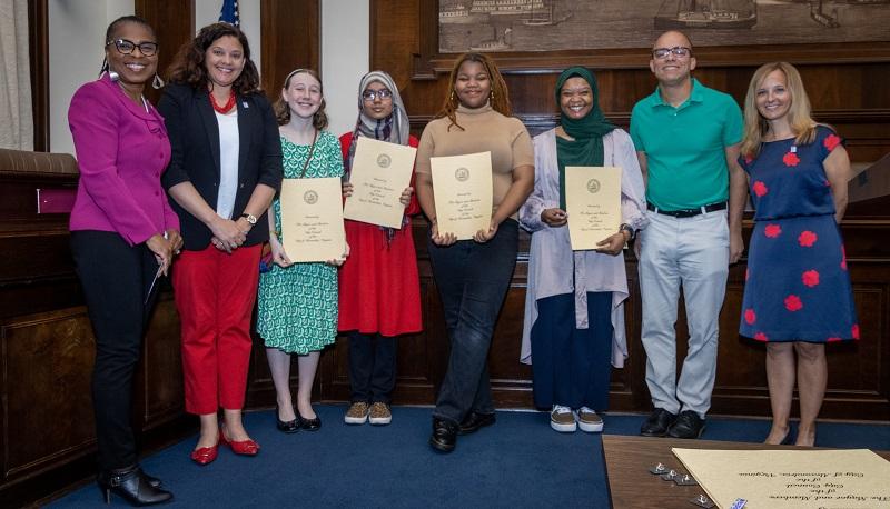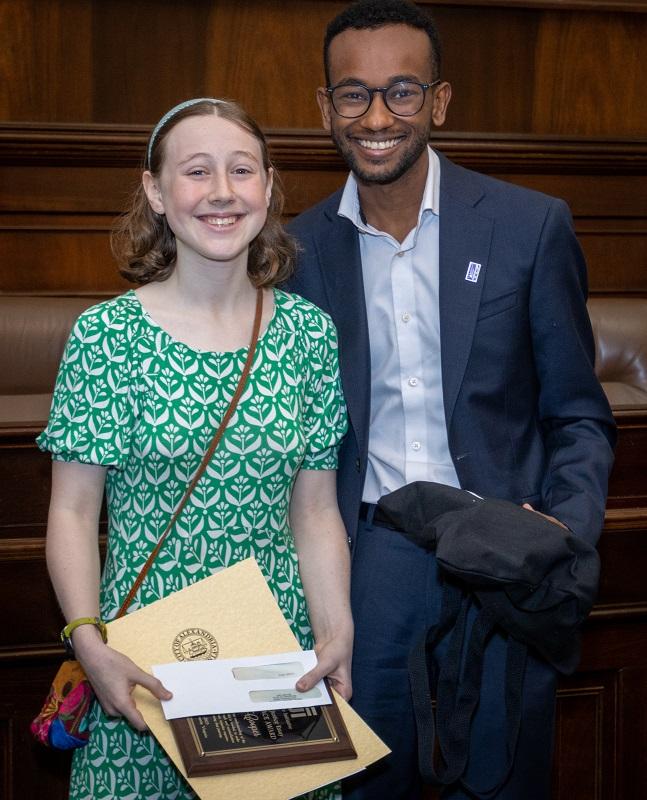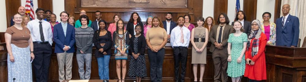 At the May 20, 2023 event at City Hall, EJI Rep. Deksyos Damtew presented a total of $5,000 in scholarships to three students for essays exploring racial disparities in health care, modern-day lynchings, and an inaccurate historical portrayal that makes it a crime to be Black.