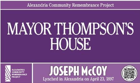 The Alexandria Community Remembrance Project marked the places in this city that were important to the story of the life and death of Joseph McCoy, an 18-year-old native Alexandrian accused of a crime and killed by a mob on April 23, 1897. The purple signs alerted passersby to Joseph McCoy’s existence and the role his life and death played in our shared history.