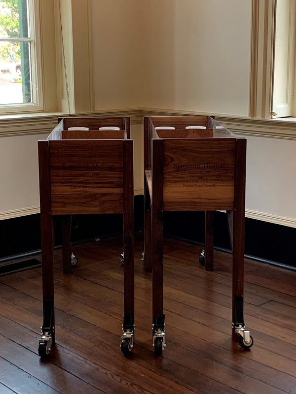 On Saturday, September 24, 2022, Alexandrians are invited to a Soil Collection Ceremony at Market Square at 4 p.m. where participants will have an opportunity to touch earth excavated from sites known intimately by McCoy and Thomas. Two wooden vessels designed and built by students at Jefferson-Houston IB School will hold the soil representing the lives of each man. Participants will take some of this soil and place it into a glass jar bearing each man’s name that will be delivered by the Alexandria community to the Equal Justice Initiative on October 7, 2022.
