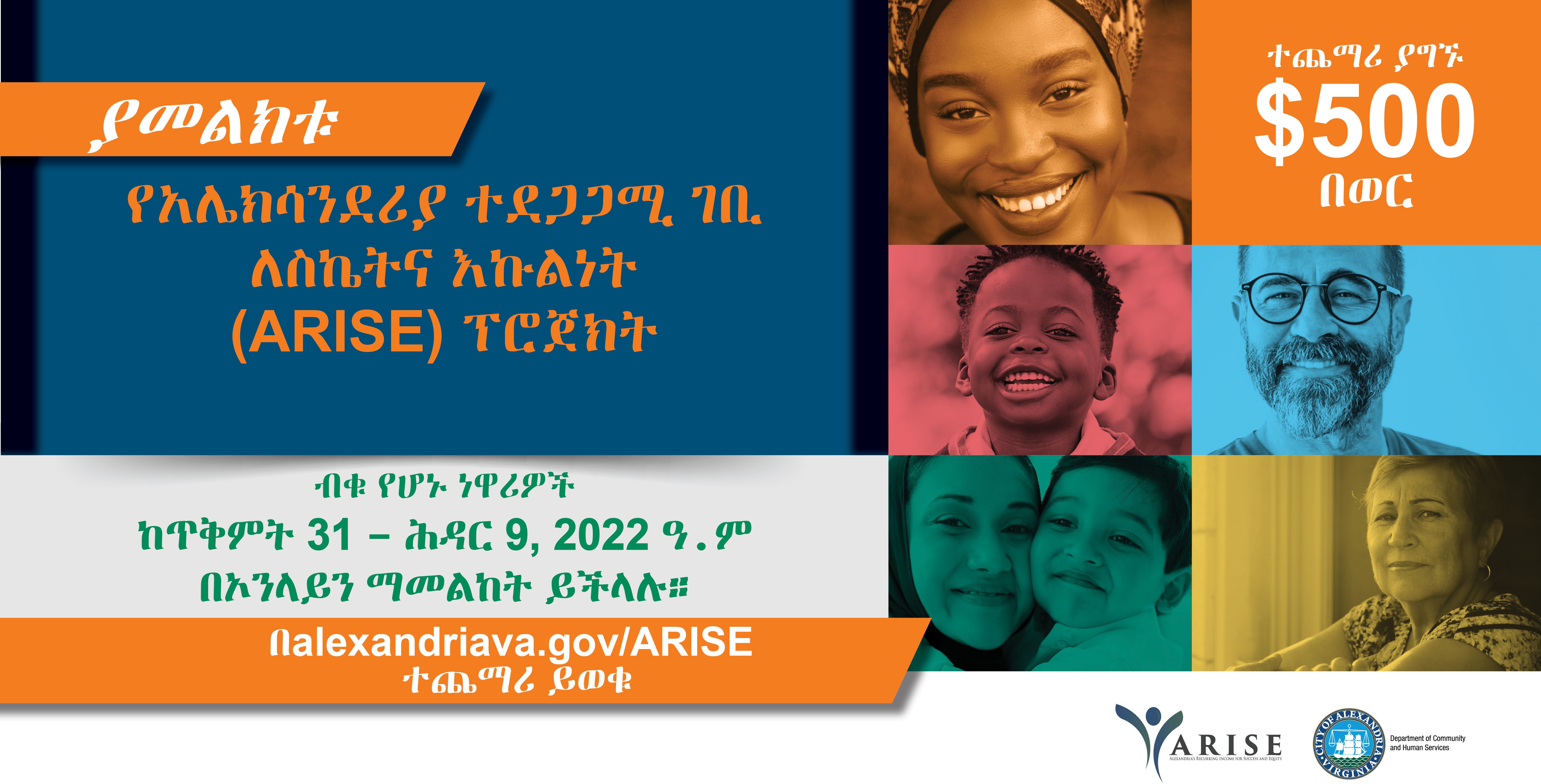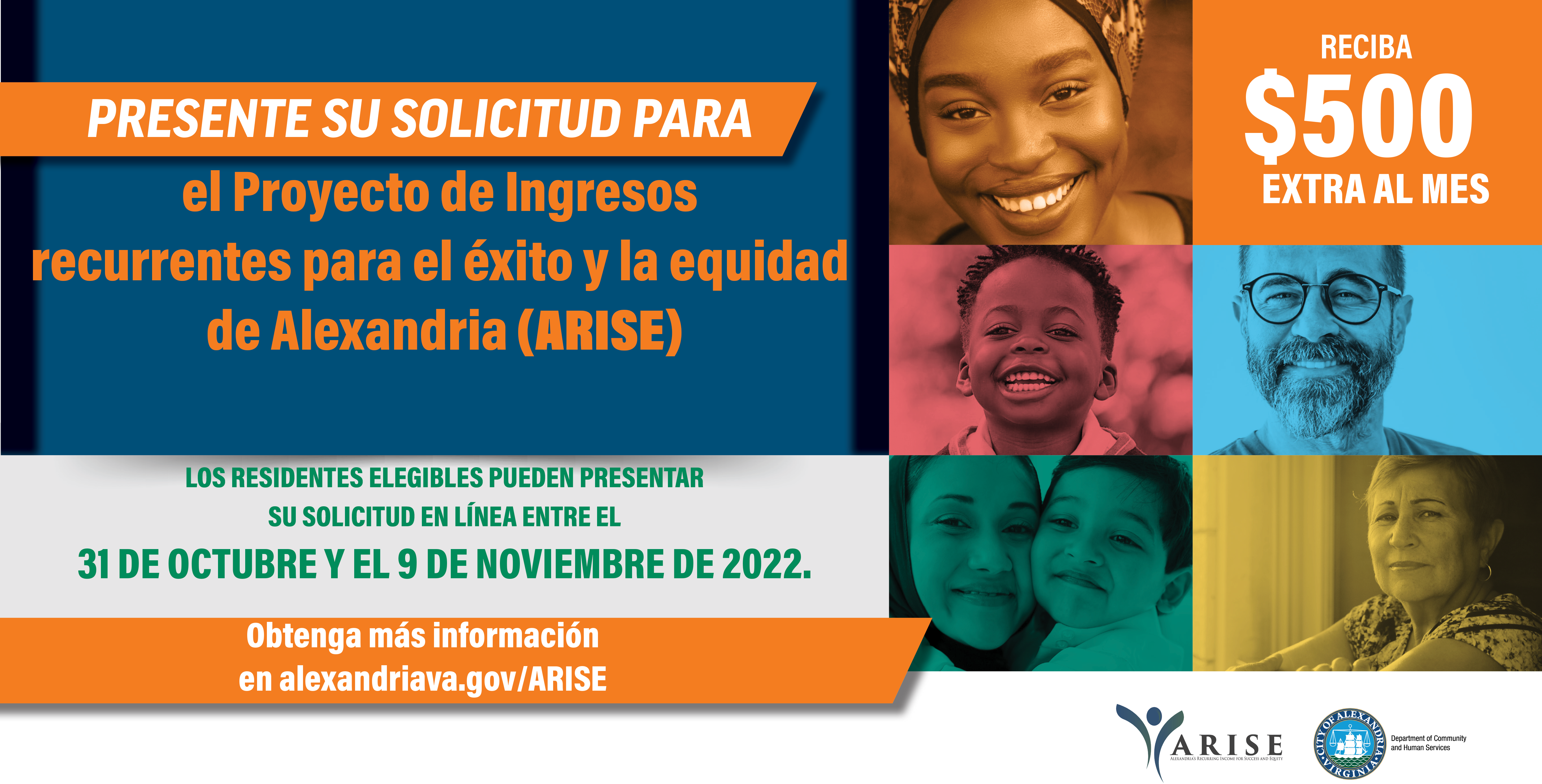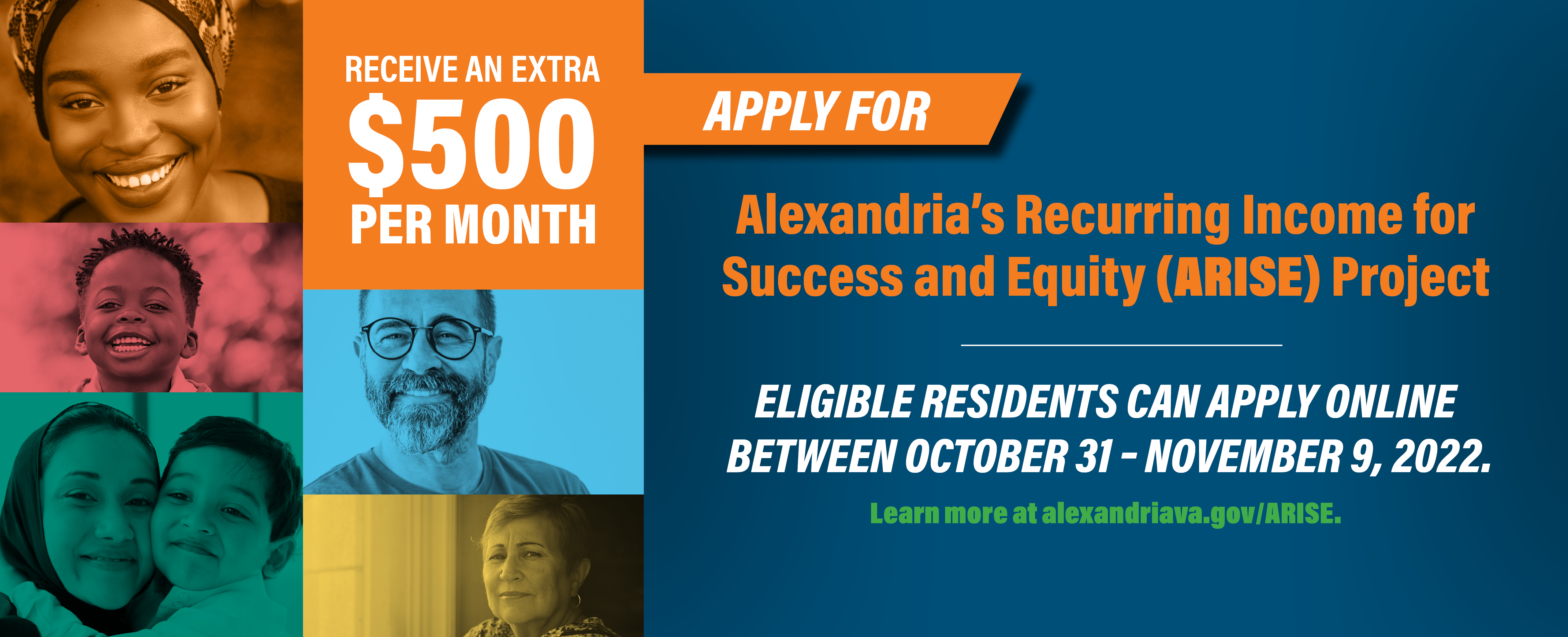 The application period for Alexandria’s Recurring Income for Success and Equity’s (ARISE) Guaranteed Income Pilot is now open until Nov 9! Eligible residents can apply to receive $500/mo for 2 yrs. #ARISEALEX #AlexandriaVA #NorthernVA #NoVA Details: alexandriava.gov/ARISE