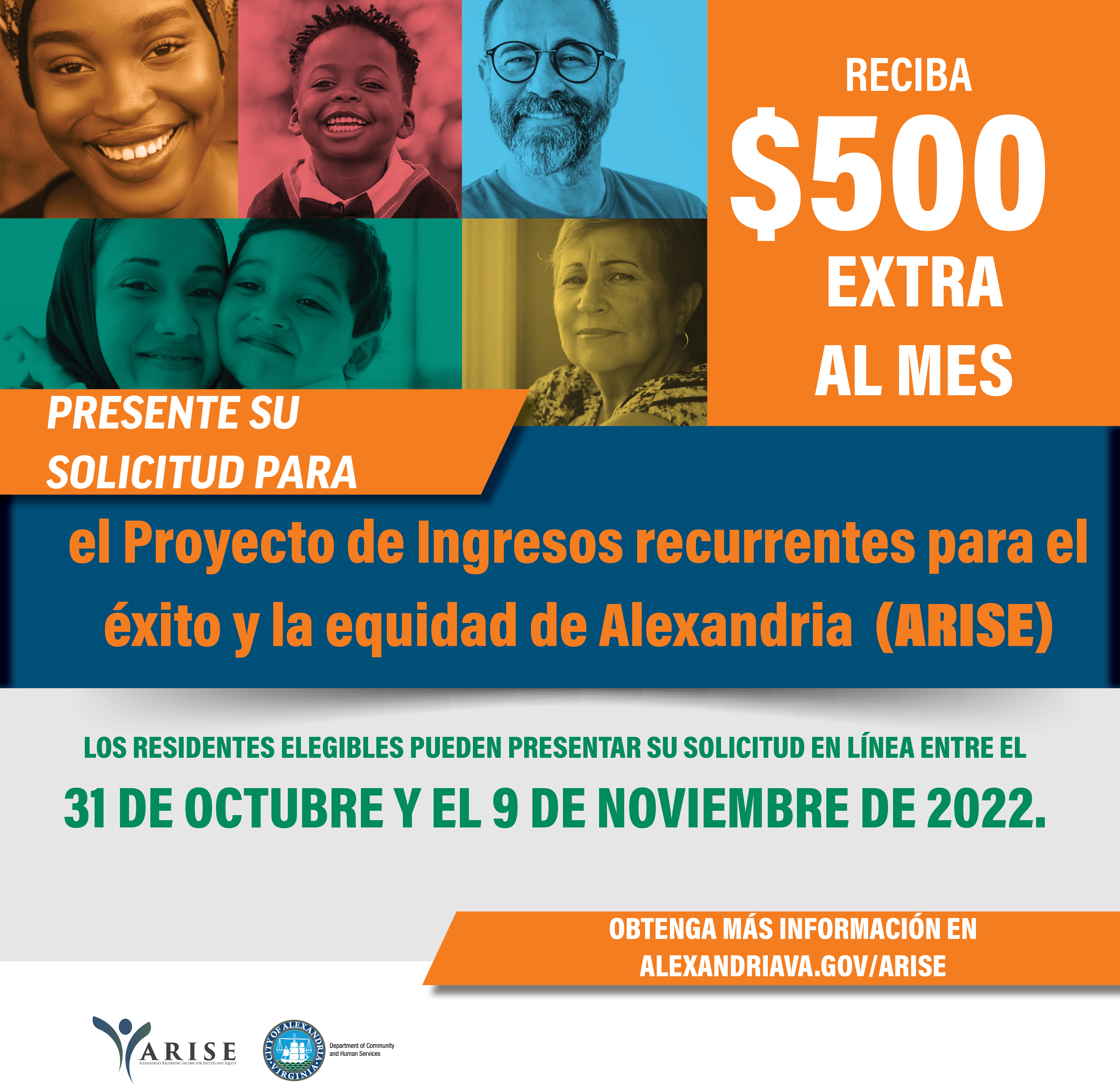 INFO :: Did you know you could receive an unconditional payment of $500 a month for two years to spend with no requirements and no restrictions? Alexandria’s Recurring Income for Success and Equity’s (ARISE) Guaranteed Income Pilot is addressing the longstanding national and institutional problem of the racial income gap. Eligible residents can apply online between October 31–November 9. Learn more at alexandriava.gov/ARISE. #ARISEALEX #GuaranteedIncome #ACTforAlexandria #AlexandriaVA #NorthernVA #NoVA - Instagram