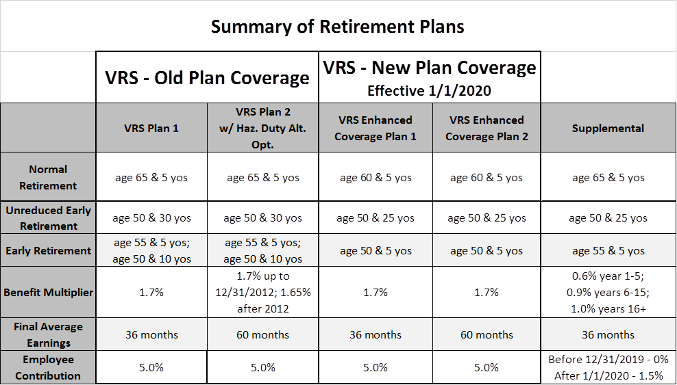 - VRS retirement benefits will change to the VRS Enhanced Hazardous Duty benefits