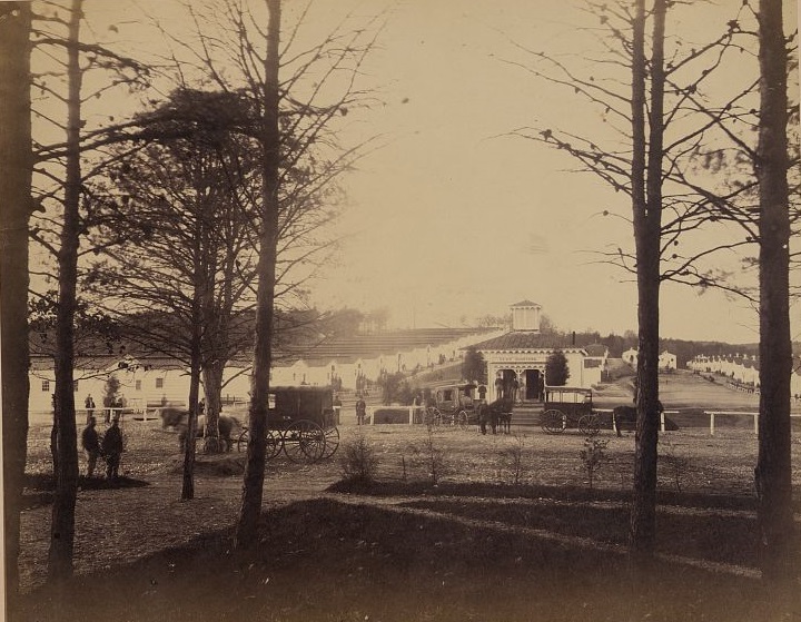 The images shown below are of the later Camp Convalescent, opened in 1863 near Alexandria in what is now Arlington County, near the present site of the Army/Navy Country Club and Glebe Road.