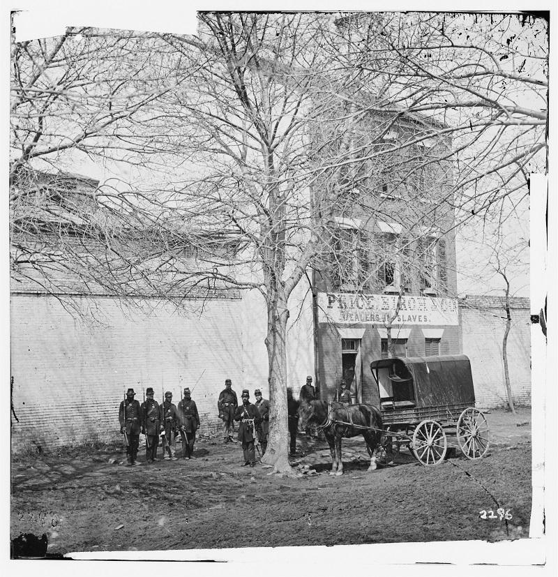 The three-story brick building with mansard roof was built as the residence of Robert Young, Brigadier General of the second Militia of the District of Columbia. By 1828, it was leased by Isaac Franklin and John Armfield and used as a "Negro Jail" or slave pen for slaves being shipped from Northern Virginia to Louisiana. Franklin and Armfield were active until 1836, exporting over 3,750 slaves to cotton and sugar plantations in the Deep South. Later, other firms continued trading in slaves here. A sign seen in Civil War period photographs has the name of Price, Birch & Co. During the Civil War the building and its surrounding site were used as a military prison for deserters, the L'Ouverture Hospital for black soldiers and the barrack for contraband-slaves who fled the confederate states and sought refuge with Union troops.