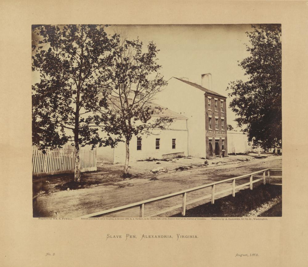 These images of the Slave Pen include an anti-slavery broadside from 1836 and photographs taken during the Civil War, 1861-1865, when the property was used by the Union Army as a jail.