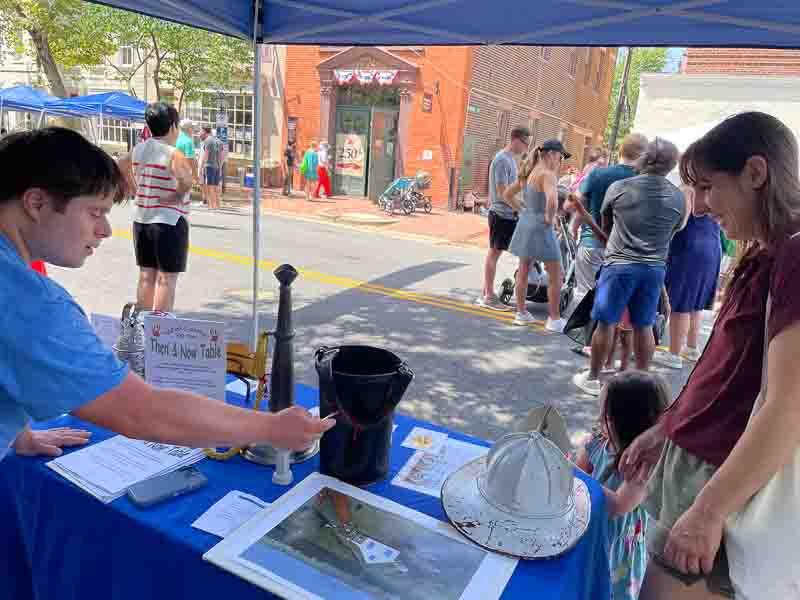 The Festival on August 6, 2022 was the last opportunity to see Friendship’s 1851 hand-operated suction engine – elaborately decorated with the company’s clasped-hands insignia – before it was sent for conservation treatment. The restoration was possible thanks to the generous support of the Friendship Veterans Fire Engine Association, Alexandria Association, Historic Alexandria Foundation, and many individual donors.