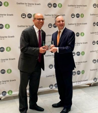 City of Alexandria Mayor Justin Wilson was recognized by the Coalition for Smarter Growth for his dynamic work in land use and transit sustainability in the greater Washington D.C. area. Mayor Wilson is recipient of the 2023 Livable Communities Leadership Award and was honored for work in elevating the City to a regional standard for walkable, transit-oriented communities.