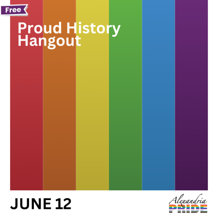 Pop in, take a moment, and meet new friends at the LGBTQIA+ History Hangout at the Alexandria History Museum. Learn about our Oral History division and share your story, talk to the Alexandria LGBTQ+ Task Force, learn about LGBTQ+ history, and make a fun shrinky-dink to take home. Alcoholic and non-alcoholic beverages available for purchase. Ages 16 and up.
