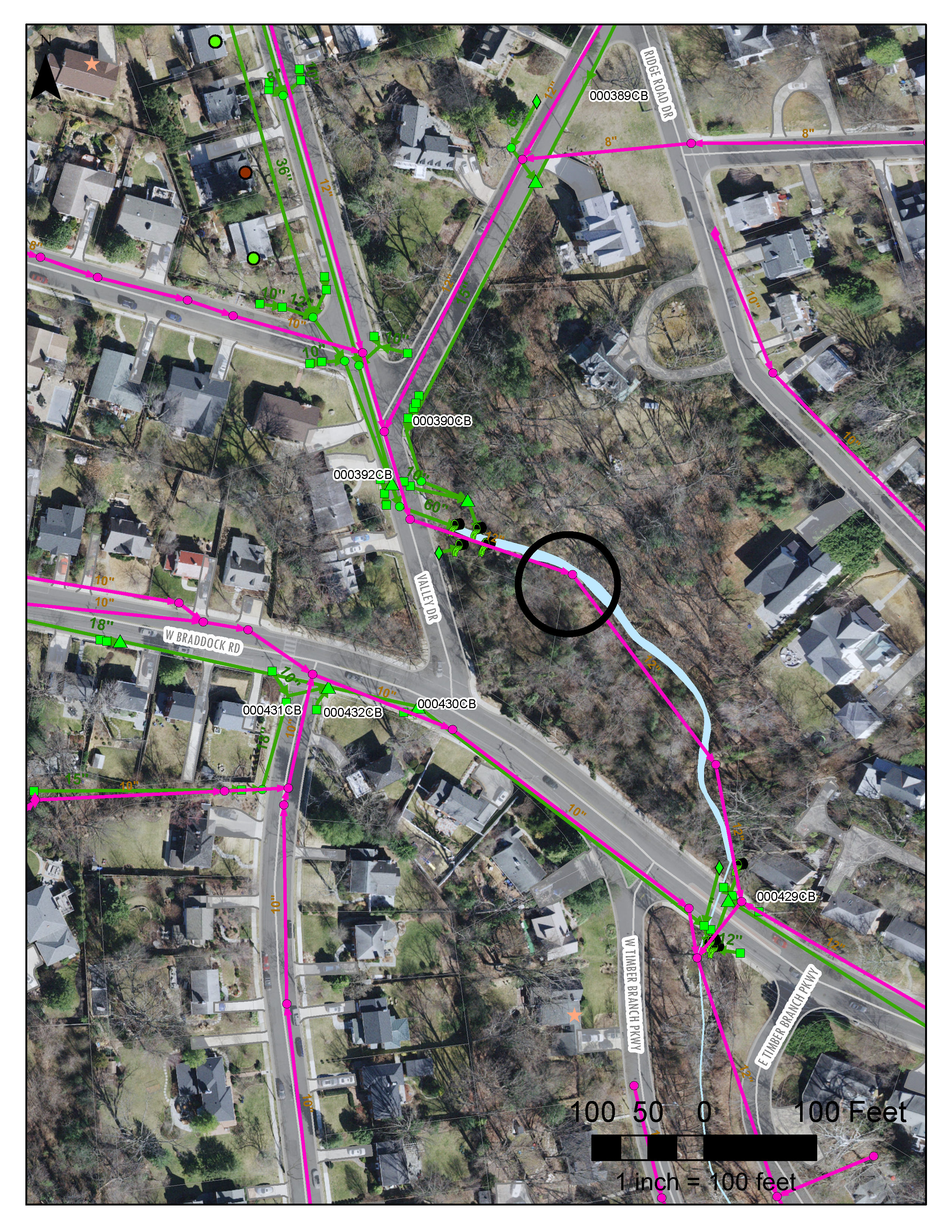 Sanitary Sewer Overflow at Valley Drive and W. Braddock Road: Avoid Timber Branch Stream