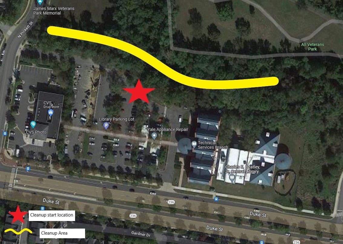 Participants will meet at the Charles Beatley Library parking lot at 5005 Duke Street for a sign-in and event briefing before walking to Holmes Run.