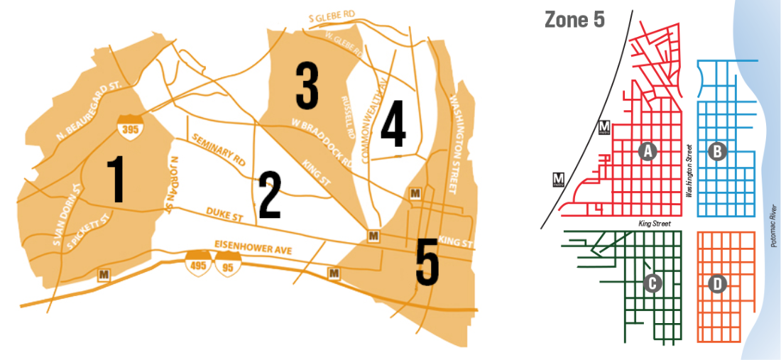 Alexandria is sectioned into five collection zones (see map below), each with a specific start date and three separate passes. Residents who receive City trash and recycling collection services may recycle leaves in three ways: