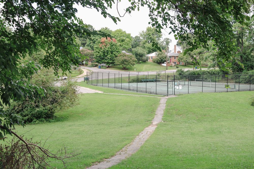A foot path meanders through the park down towards Dora Kelley Nature Park. Features four pickleball & two tennis courts.
