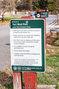 Alcohol Beverage Policy: Fort Ward is specified and designed as a park where the use of alcoholic beverages by a group of 50 or more, based within the City of Alexandria, is permitted under strict regulation and control. Only draft beer and wine will be permitted in the park areas 2,3, and 4. Beer must be in a keg and served in disposable cups. Additional fees, permits and licenses are required for approved alcohol use in the park. Please allow at least two weeks prior to the date of reservation for proper processing of ABC fees, permits and licenses. Consumption of alcoholic beverages by any person or group is prohibited in Fort Ward Park without proper documentation.