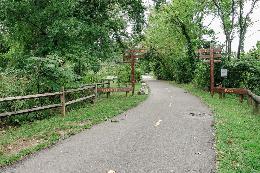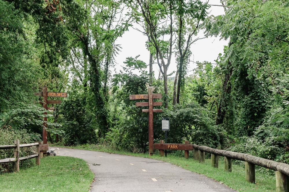 The path connects Holmes Run Park, Brookvalley Park, Veterans Park, Tarleton Park, Joe Hensley Park, Cameron Run Park, and the Eisenhower Avenue corridor.