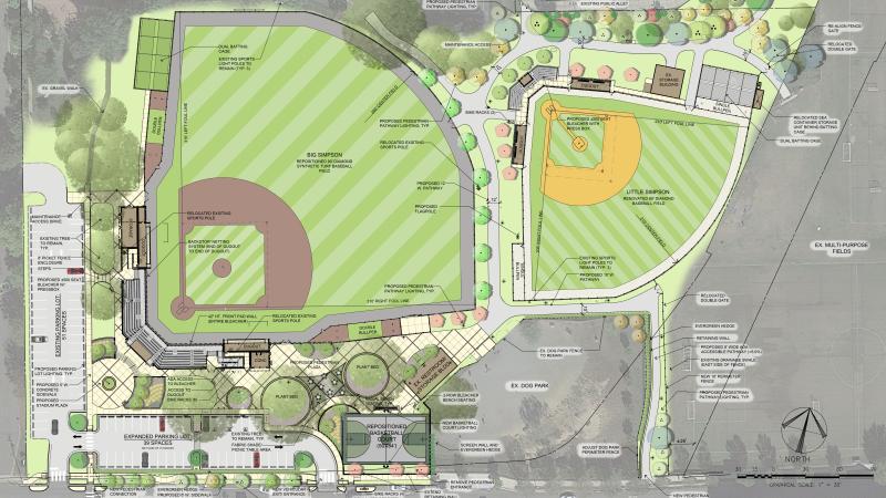 Between the completion of the plan in 2014 and the start of the design phase in 2021, the community identified specific needs, particularly regarding improvements to both Big and Little Simpson Ball Fields. The overall renovation project aims to implement the following enhancements: