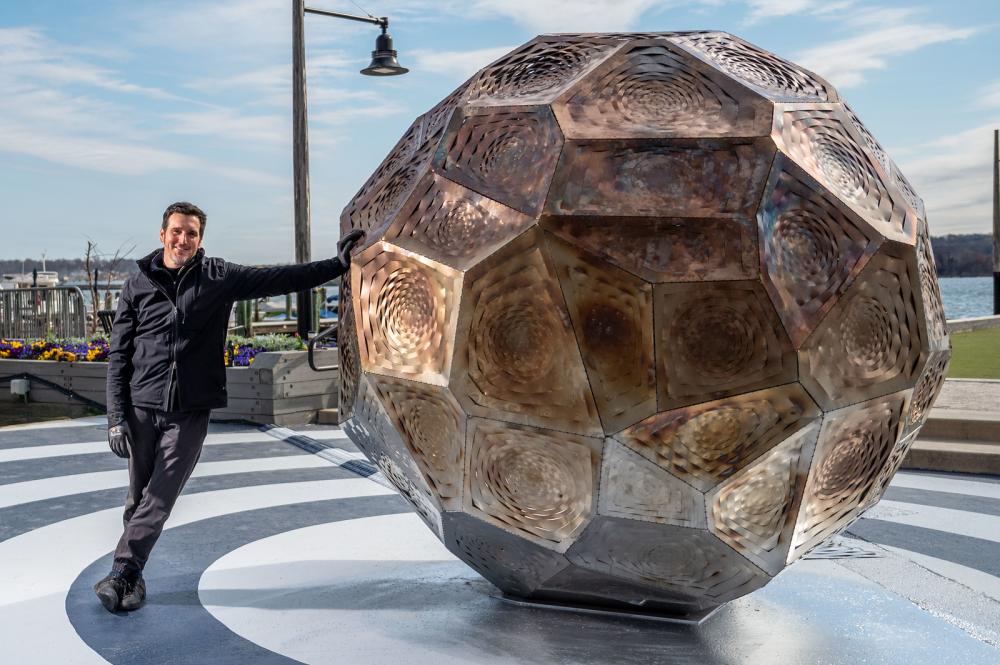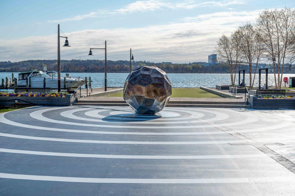 At the foot of King Street on the shore of the Potomac River, an interstellar collision that took place not too far away and not too, too long ago between an asteroid and our planet is about to re-appear. The City of Alexandria unveiled the sixth installment of the Site See public art series called Interstellar Influencer (Make an Impact), in Alexandria’s Waterfront Park (1 Prince Street) in late March 2024. The installation was done by artist/architect duo Jason Klimoski and Lesley Chang (StudioKCA) and was on display from March through November 2024.