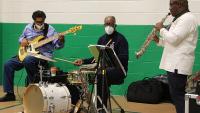 Alexandria musician Vaughn Ambrose donated his time and talents to provide a holiday jazz performance to 55 of our residents as part of the Yellow Door Concert Series he and his wife Robyn Ambrose founded in 2018. Bassist Michael Pryor and drummer Greg Holloway joined Vaughn Ambrose as he played saxophone, and together they performed timeless and newer classics including “Christmas Time Is Here,” “This Christmas,” and “Little Drummer Boy.”