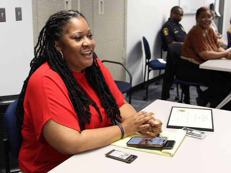 Above: (l-r) Sheriff Sean Casey, Director LaTanya Ervin, Chapter President Rand Pixa and John Blair, the Chapter's Public Safety Awards Chair. Below: Congratulations to Director LaTanya Ervin!