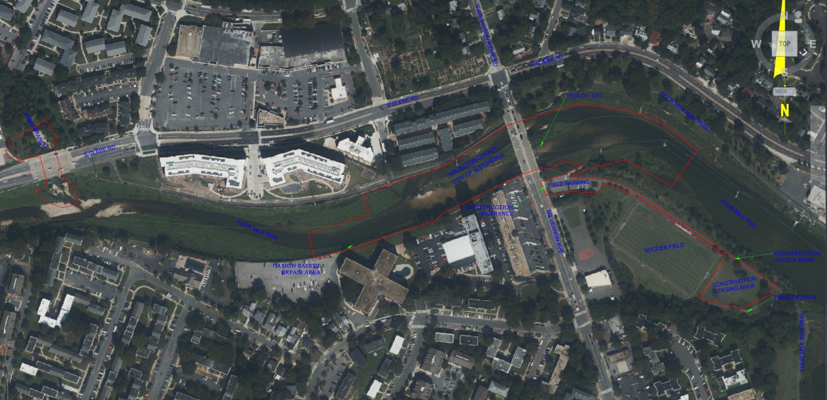 The Four Mile Run Dredge Project will entail the removal of approximately 1,200 linear feet of accumulated sediment (dredge) from the Four Mile Run channel, upstream and downstream of the Mount Vernon bridge. The proposed dredging will restore the available capacity to provide the original design freeboard set by the USACE. Project work will be conducted in environmentally sensitive areas which include the Resource Protection Area (RPA), federally-designated 100-year floodplain, federally-designated “waters of the United States”, and U.S. Army Corps of Engineers Flood Control Levee and Channel.