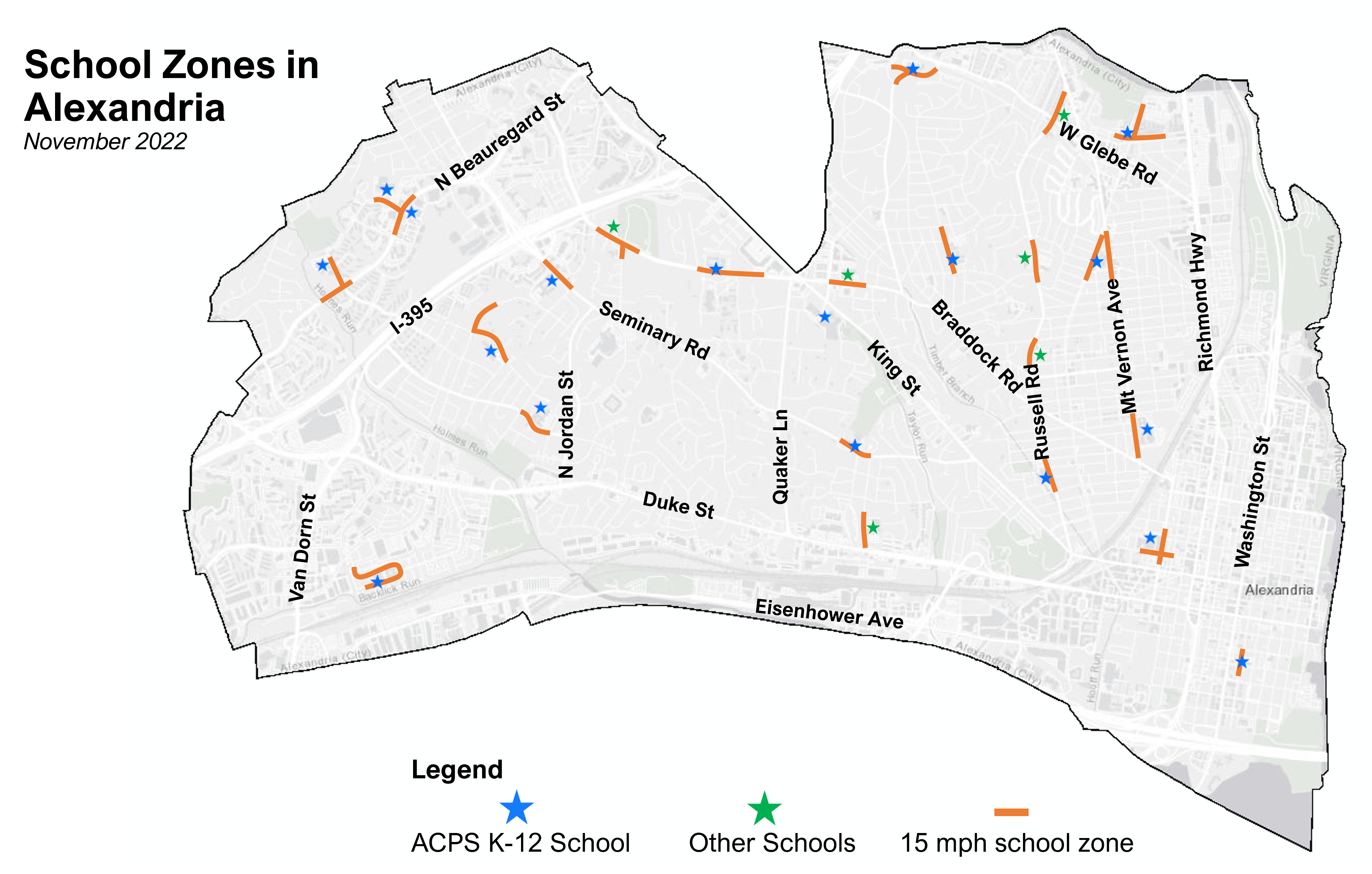 Locations were agreed upon by Alexandria City Public Schools, the City of Alexandria Police Department, and the Department of Transportation & Environmental Services.
