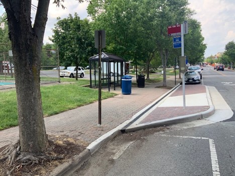 Accessible bus stop (bus bulb with curb cut in front of stop) in Alexandria