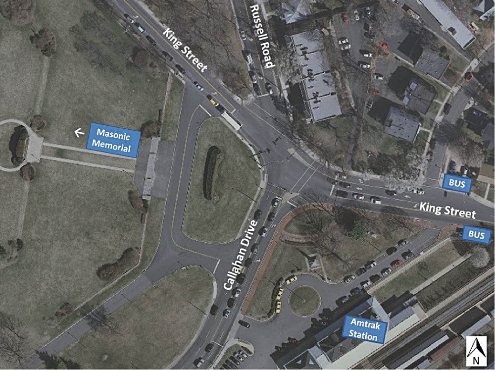 The project includes several improvements at the intersection of King Street, Callahan Drive, and Russell Road: