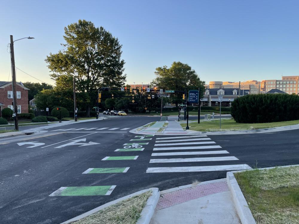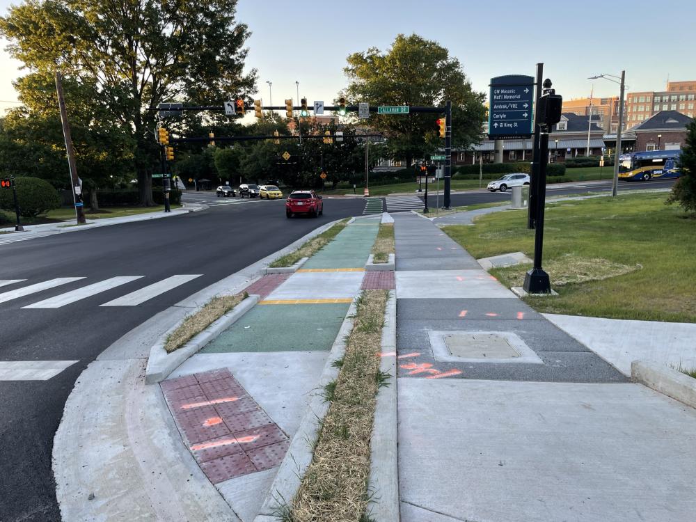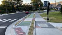 - An eastbound bike lane, including a section that is fully separated from the roadway, that gives riders a designated space through the intersection